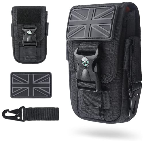 The standard phone holsters are designed to be universal and typically accommodate most modern smartphones up to 6.5 inches in height. Many models, such as the Compass Phone Pouch, also include extra internal space for cards, keys, or a small portable power bank.
